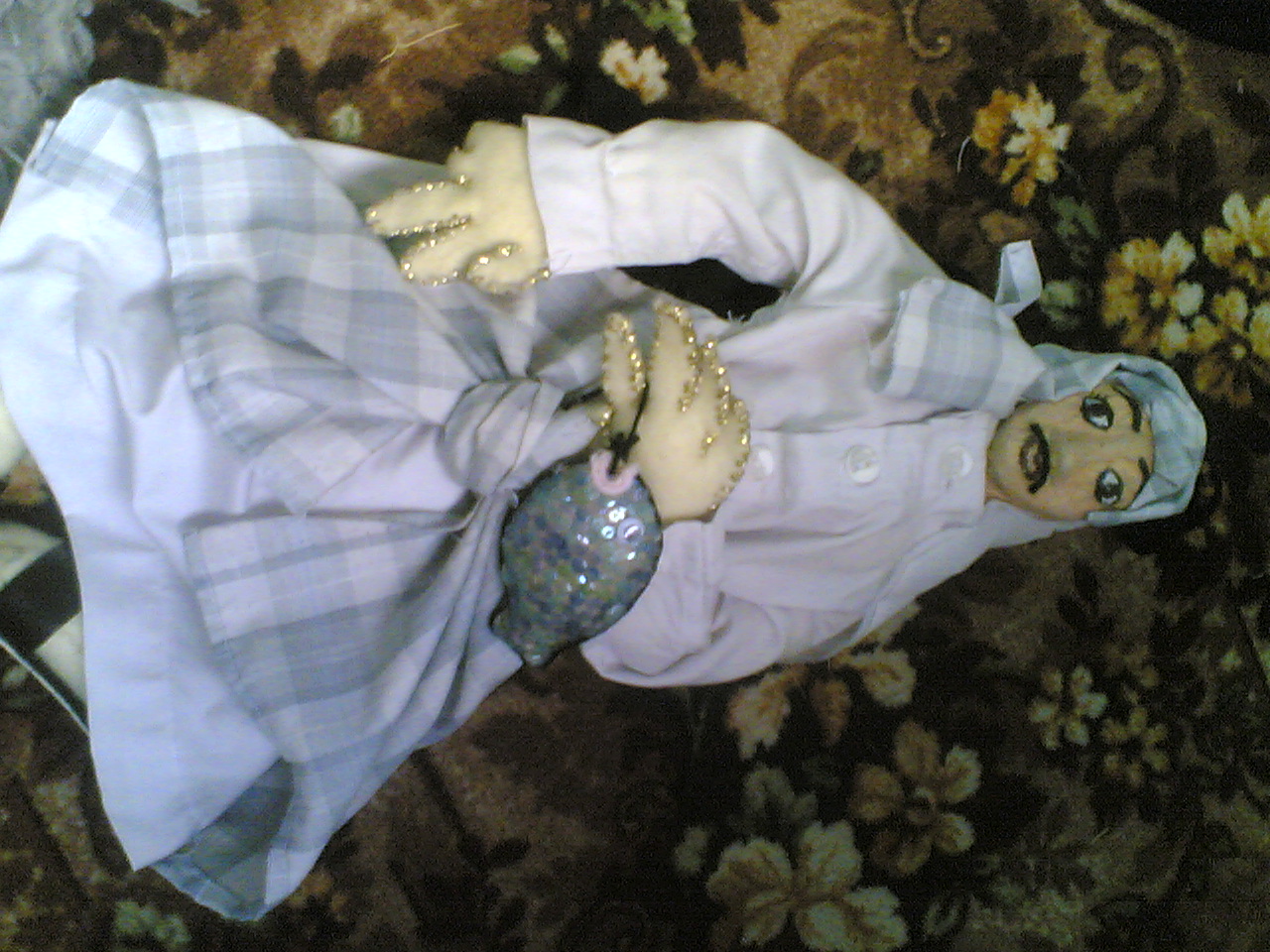 هلا باعضاء المنتدى هذا عملي الثاني في الدمى وهي دميه شعبيه عبارة عن شخصيه صياد واتمنى ان ينال اعجابكم واذا شفت ردود قويه براويكم اكثر ^_^
