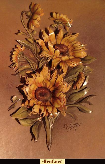 1_نجيب العمل المراد الشغل عليه ثمننسخ منه اربع نسخ ومن ثم ادهنه بالورنيش كل نسخ على حده اكثر من مره على شان تعطيني سماكه
