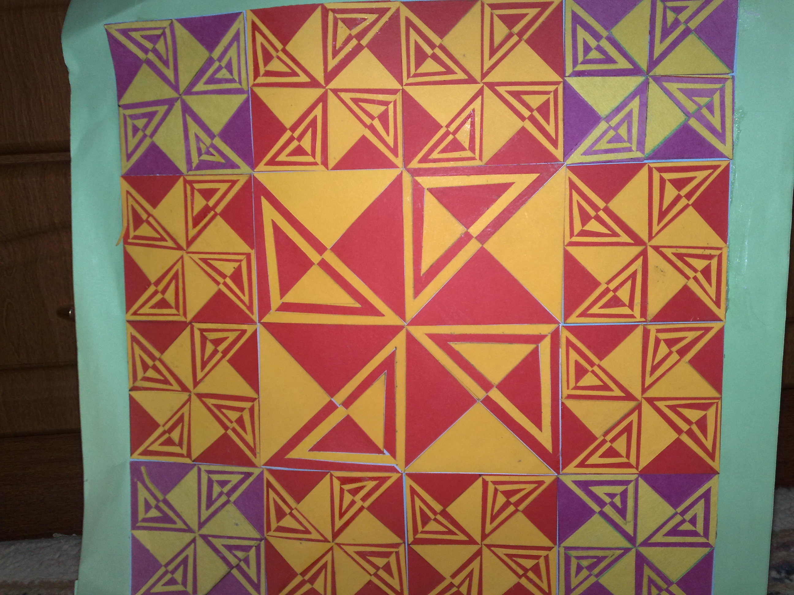 اعرض عملي عن فن op art وهو فن الخداع البصري وهذا مجهودي عملته بورق الملون وتكرار الورق اصبح عمل بفن التداخل والتراكب