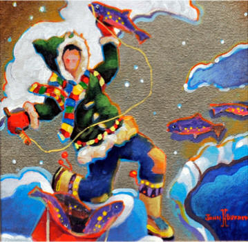 في هذه اللوحات نرى ان الفنان الكندي يصور بيئته التي يعيش بها وهو معتز بها