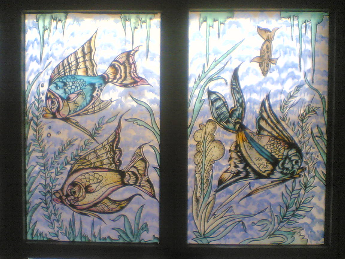 زخرفة الأسماك على الزجاج زخرفة الأسماك على الزجاج زخرفة الأسماك على الزجاج