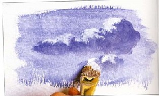 ثم نمزج معها لمسه من الأبيض ومن ثم رسم السحاب بالأبيض