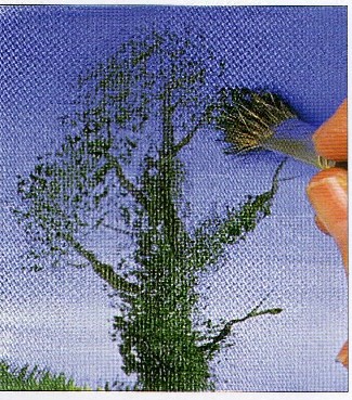 كما يمكن استخدامها في رسم توريقات الشجر عن طريق التنميش فوق الجذع المرسوم