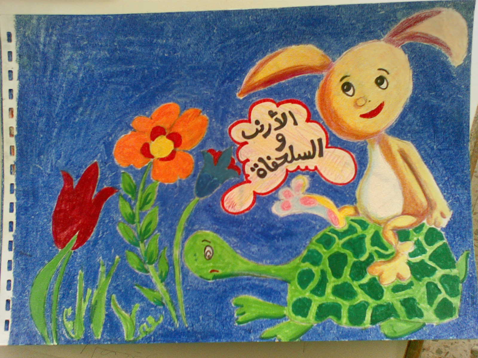 وباستخدام ألوان خشبية وألوان باستيل جاف