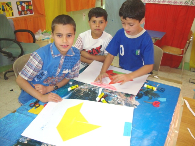 صور من طلاب مدرسة ابي بكر الصديق في درس الرسم