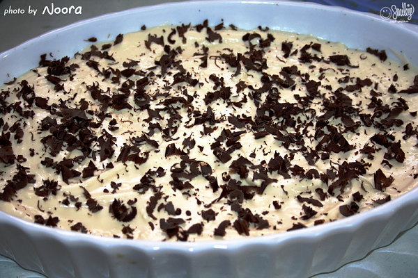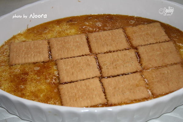 بَعُدها نَعُمَل الكَرِيم كَرَأَمِْيل بس بِدُون السَكِرَ آلَمََحْرُوق اللي يجي مَعَه ، ونَصَبَه عَلَّى الِصِّيْنِيَّة وهُوَ حار