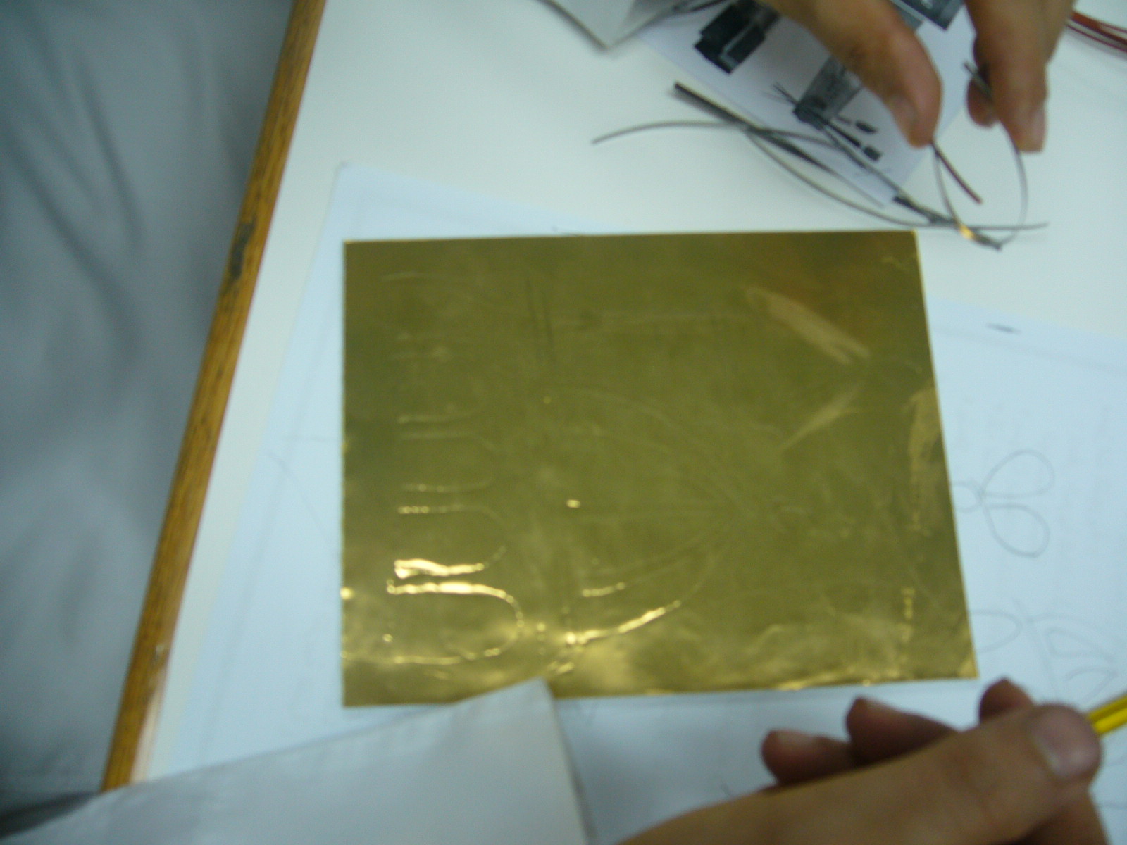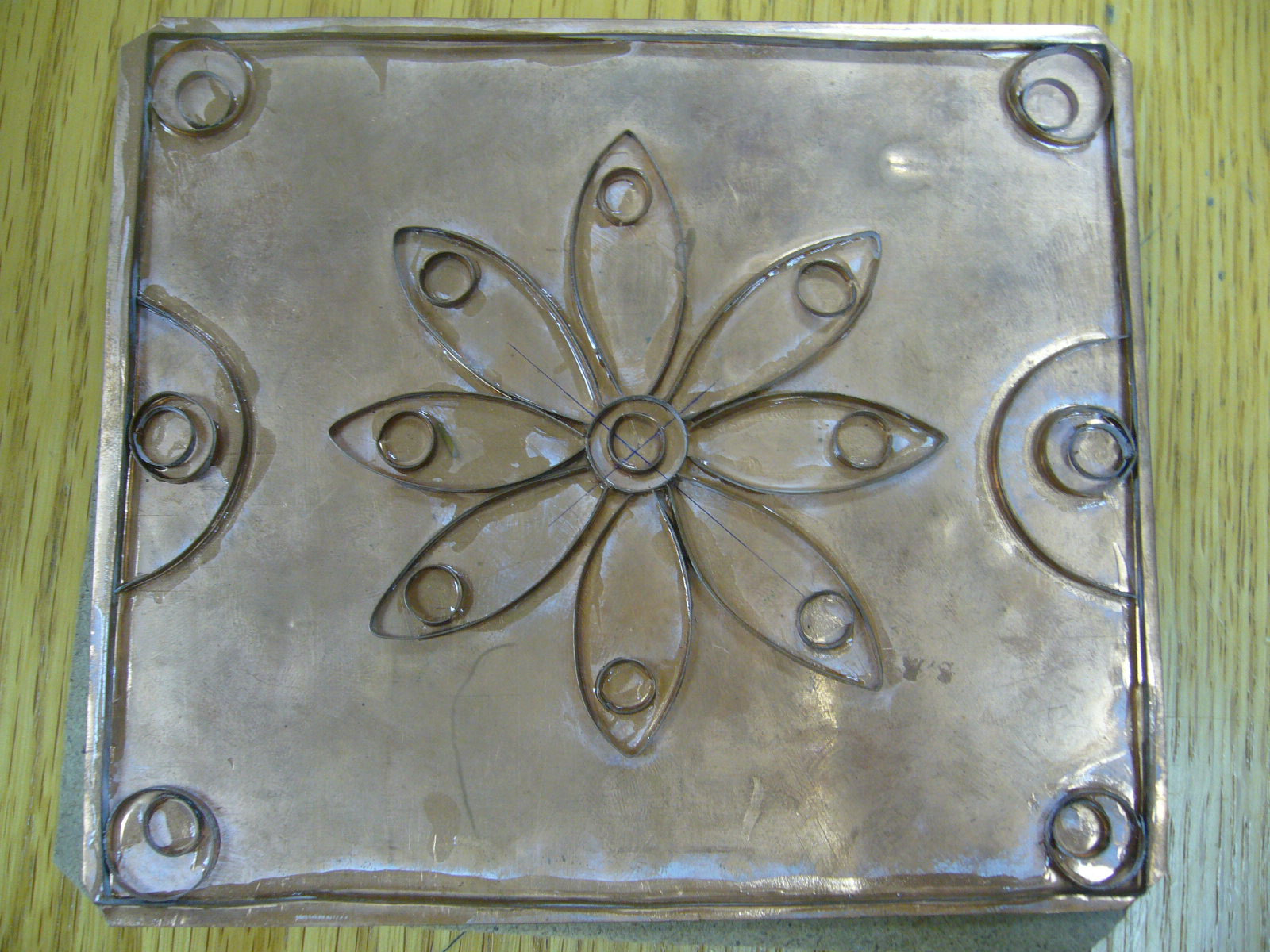 1 ـ رسم التصميم على قطعة النحاس