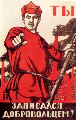 ومع سيطرة الستالينية في ثلاثينيات القرن العشرين وأربعينياته, سيطر التبسيط والتسطّح على مجمل مناحي الحياة الثقافية الروسية, وأصبح ما أطلق عليه (الالتزام بقضايا البروليتاريا) هو المعيار المعتمد رسمياً لقبول الأعمال الفنية, وتمكينها من التمتّع برعاية الدولة, وفرص العرض والانتشار, وهذا ما أدّى إلى أن تقبع الاتجاهات التحديثية الروسية في الفن التشكيلي عدّة عقود في الظلال, مقابل تطوّر ملحوظ لفن الإعلان السياسي الذي بلغ شأواً مميّزاً في فترة الحرب العالمية الثانية, وفترة ما سمّي بالحرب الباردة, بالإضافة إلى النجاحات الخاصّة التي أحرزها الفنانون السوفييت في تصميم (الميدالية) وتميّزهم بإشادة التماثيل والنصب التذكارية ذات القياسات الضخمة, وأعمال الحفر الجداري بشقّيه الغائر والنافر.