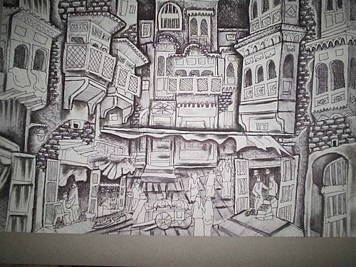 بعدة خامات : ألوان الباستيل ، و الباستيل المائي ، الطباشيري
