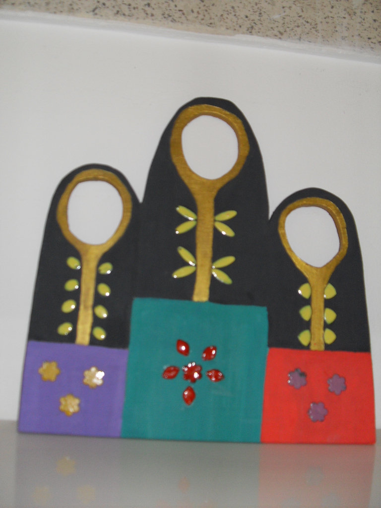هذه مجموعة من نتائج طالباتي في درس تصميمات شعبية بالخشب و المينا الحرارية لطالبات الصف الأول و الثاني الاعدادي