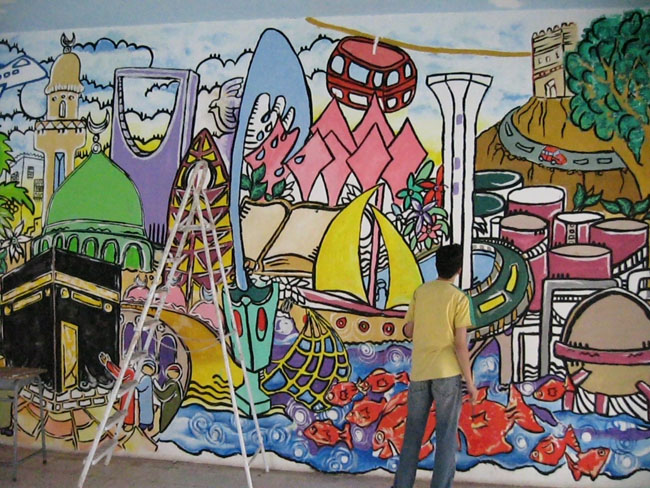 على فكرة !! الجدارية من تنفيذ ثلاث طلاب موهوبين فقط من المرحلة المتوسطة .