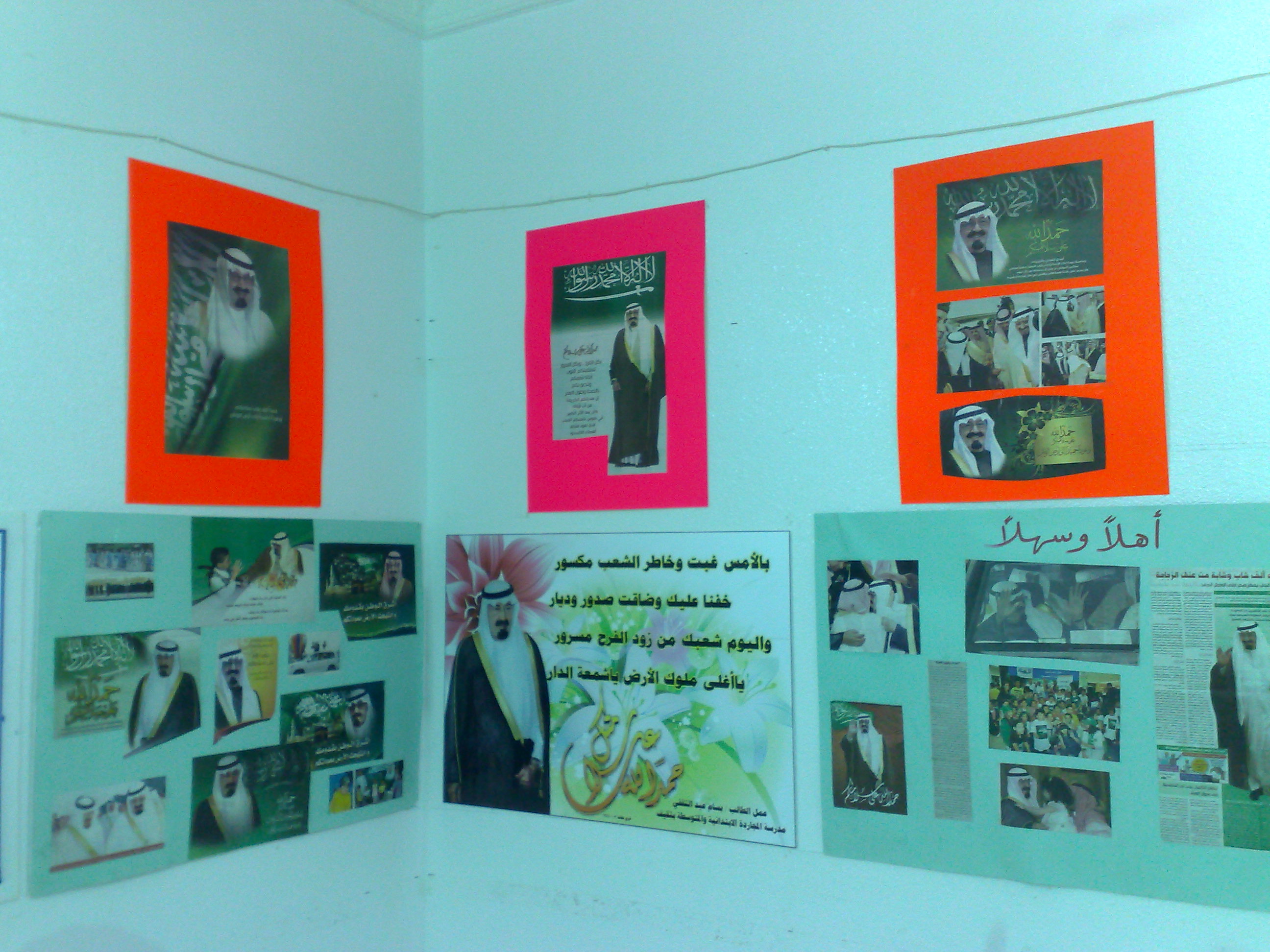 أحتفلت التربية الفنية بمدرسة المجاردة الابتدائية والمتوسطة بثقيف جنوب محافظة الطائف يوم الأثنين الموافق 1432/4/2هـ خلال فسحة الطلاب وحصة النشاط وقد بدأ البرنامج بالعرض الرياضي في مسيرة لجميع طلاب المدرسة ومعلميها يتقدمهم مدير المدرسة الأستاذ/ جمعان عطية الحصين الثقفي وهم يحملون راية التوحيد لاإله الأ الله محمد رسوال الله وكذلك حاملين صور لملك الإنسانية خادم الحرمين الشريفين الملك عبد الله بن عبد العزيز آل سعود حفظه الله وأتجهت المسيرة نحو ملعب المدرسة في عرض رياضي يليق بالمناسبة وقدعبر الطلاب أروع الدعوات الصادقة والأناشيد الوطنية في حب المليك والوطن وبعد إنتها العرض الرياضي أتجه الجميع لحضور إفتتاح معرض عوداً حميداً ياملك الإنسانية وهو نتاج أسبوع كامل من خلال حصص التربية الفنية في تعبيرات ولوحات جميلة زانت أروقة المعرض روعة وجمالاً كيف لا وهي تعبرعن سلامة وعودة ملك القلوب أبو متعب إلى أرض الوطن سالماً معافى وهذا المعرض يعتبر الجزء الثاني حيث سبقة معرض حمداً لله على سلامة ملك القلوب قبل عودة أبو متعب للوطن .وقد تجول الطلاب والحضور لمشاهدة صور منوعة لملك القلوب أبو متعب حفظه الله وقد أعجب الجميع بماشاهدوه من تعبيرات فنية تخص هذه المناسبة الغالية علينا جميعاً وبعد إنتها زيارة المعرض عاد الطلاب لمواصلة بقية حصص يومهم الدراسي وهم يقولون نحن بخير مادمت ياملك الإنسانية بخير.