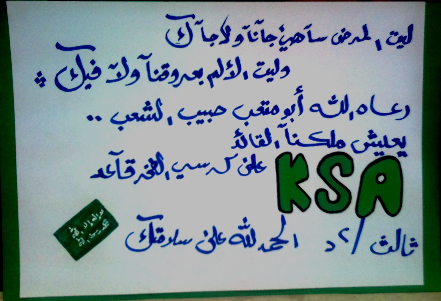 تشارك طالباتي بمناسبة رجوع الملك سالما اخذت الطالبات تتسابق في تعبير عن مشاعرهن بالالوان وكلمات رائعه
