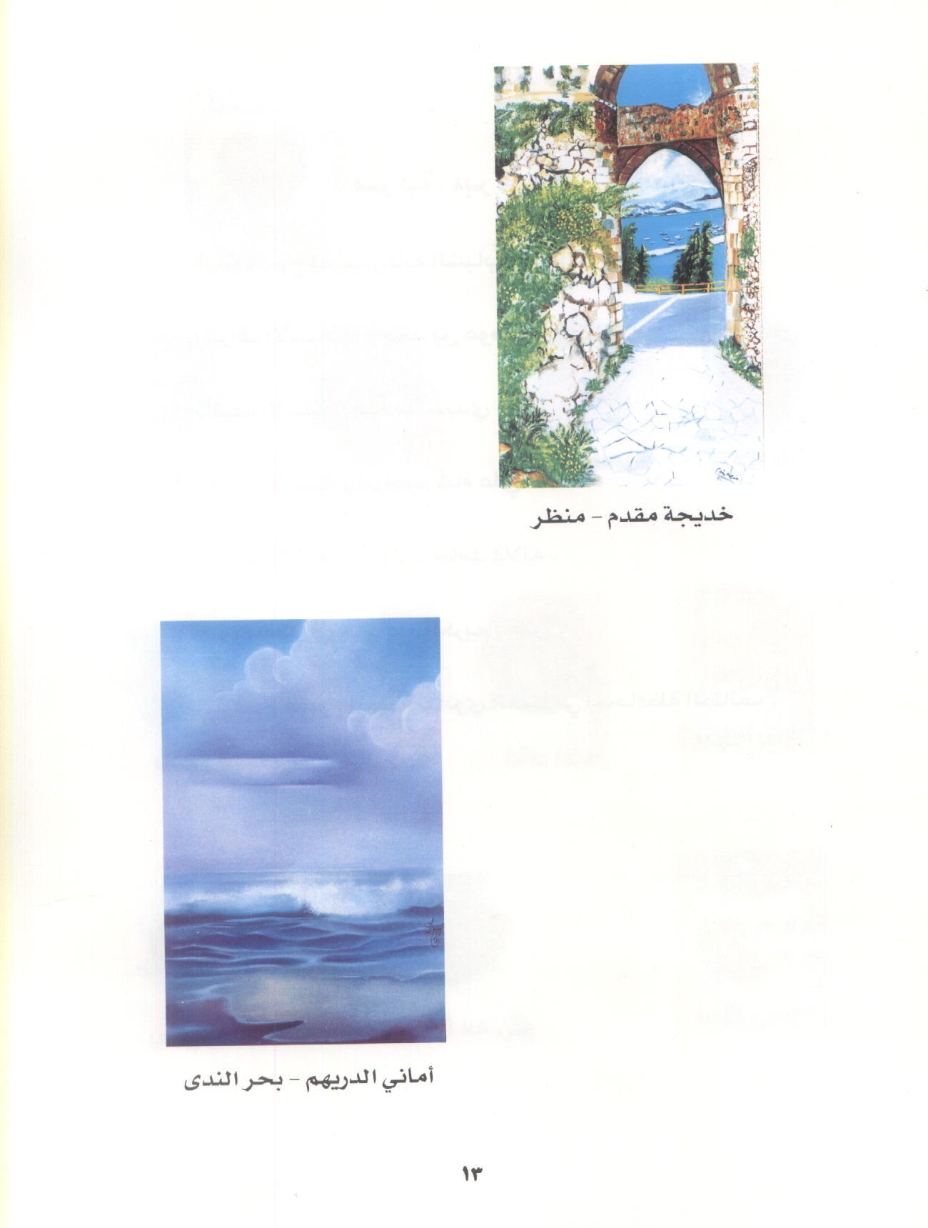 يوسف جاها بأسلوبه المعهود الذي يمثل في اعتقادي الواقعية الجديدة رسم الطبيعة في عمله "الشاطيء الآخر" بألوان متناغمة وخطوط انسيابية ومساحات واسعة. ورغم ما يغلف عمل عبد الرحمن خضر من بساطة وتلقائية إلا أن هدوء ألوانه وخطوطه تميزه وكأننا نرى حروفاً تتراقص في إيقاع بطيء أو منازل تسبح في خيال واسع.