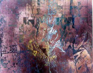 هناك من استعمل خامات مختلفة داخل نصه التشكيلي حيث نجد فيصل الخديدي بأسلوبه المعتاد قد استخدم نفس خاماته السابقة: أسلاك، بقايا ترانسستور، خشب، رخام، وفي هذه المرة أضاف "الكولاج" حينما أراد تصوير شخصية الرجل وهو في حالة حوار مع نفسه أو "حوار الذاكرة" كما أسماه. أما عبد الله المرزوق فمن مجموعته "قوس قزح الصحراء" نجده قد استخدم الخيش، والكرتون، والترانسستور، وربما قطع خشبية صغرة، وقام بتقسيم عمله إلى9 مساحات، جاعلاً قوس قزح الصحراء في المربع رقم8 .