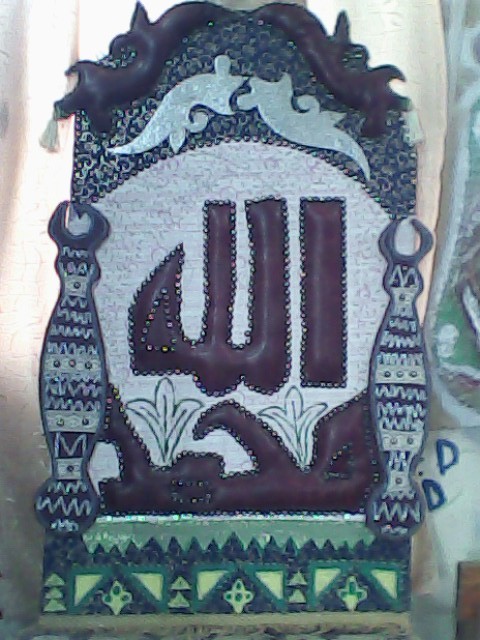 هذا العمل من خامات متنوعة بواقى الجلد الصناعية وبواقى الاقمشة الملونة والمزقشة
