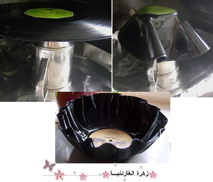 اصنعي وعاء جميل بادخال الاسطوانه في الفرن بعد وضعها على علبه معدنه..عند اخراجه من الفرن..حاولي ترتيب الاطراف لتاخذ شكل متساوي التموج (لا تنسي لبس كفوف المطبخ)