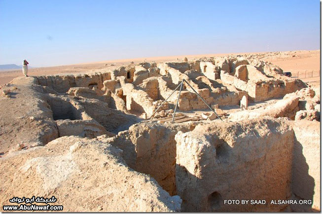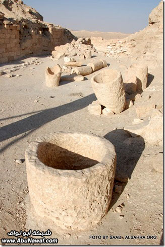ويحتوي الموقع الأساس على عدة أقسام أو مناطق هي بالاهمية المنطقة السكنية ومنطقة السوق ومنطقة المقابر وقد بنية المدينة من الحجارة المقطوعة واللبن ويتوسط المنطقة السكنية بئر وايضا منطقة السوق يوجد بها بئر ويصل المنطقة السكنية والسوق قنوات تحت الأرض لنقل المياه فقد احتوت هذه المدينة على نظام تصريف مياه معقد ومن أهم ما يميزها وجود دورات المياه الخاصة بالبيوت بالمنطقة السكنية بالدور الأعلى من المنزل. وتحتوي المنطقة السكنية للمدينة على شارعين رئسيين يتخللهما نقاط صغيرة لسقي الدواب من الخيول والأبل الداخله للمدينة ويوجد بها ايضا كما دلت لوحة جدارة اكتشفت بالموقع مبنى من سبعة الى تسعة طوابق.