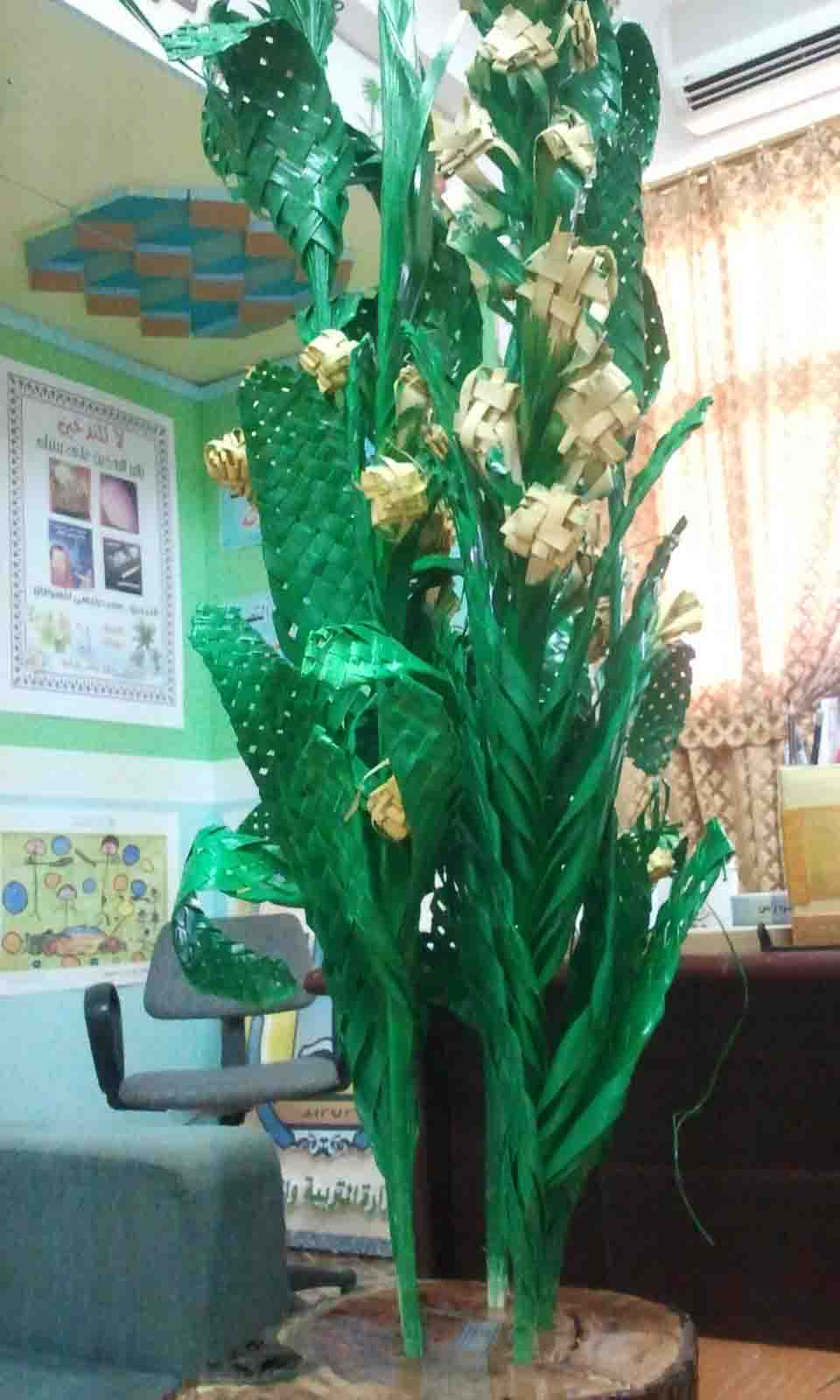 البيئة فيها الكثير من الخامات التي يمكن إستغلالها في الأعمال الفنية , ومن خامات البيئة النخيل فنأخذ منها الجريد النامي (الحديث) لعمل مزهرية وذلك بوضع مجموعة من سعف النخيل في إناء خزفي أو خشبي ونزين بها إحدى أركان المنزل
