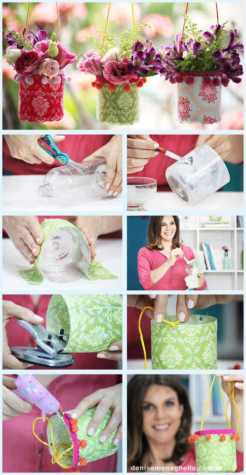 معلقة للزهور بالزجاجات الفارغة
